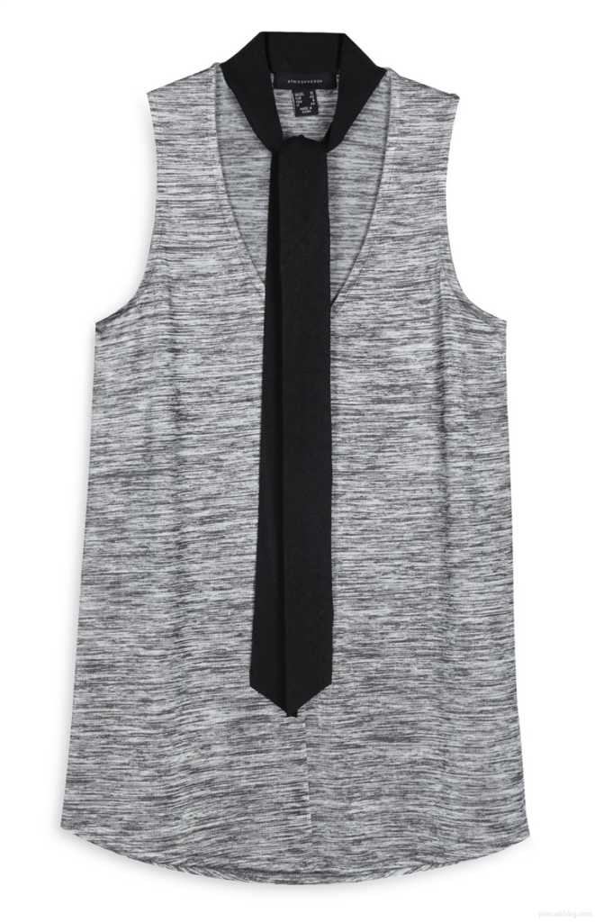 Estupenda camiseta gris para mujer metalizada con nudo y corbata.