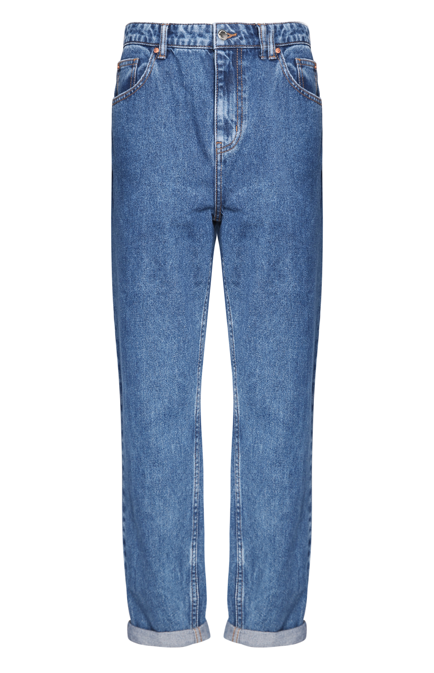 Este vaquero tiene el color azul tradicional de los vaqueros celeste, es de tiro alto, lo que quiere decir que llega a la altura del ombligo aproximadamente, cuenta con bolsillos en la parte superior de cada pierna y cuenta con un doblez hacia afuera en la parte baja de cada pierna.