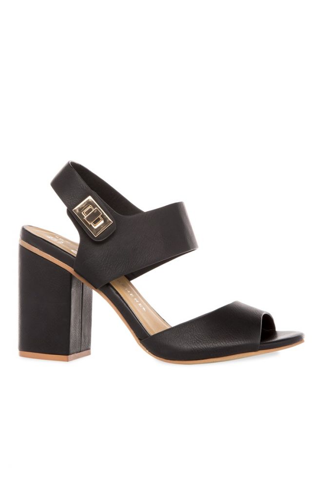 Sandalias de tacón negras con cierre giratorio en varios colores a un precio de 10 euros el par. Sólamente en Primark, colección verano 2015, acércate a comprar unas y que no te las quiten de las manos.